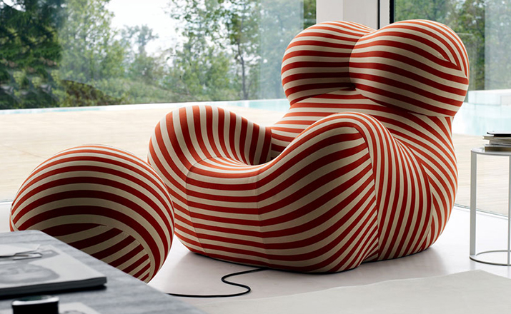 1969 年,意大利家居品牌 B&B Italia 发布了由世界著名设计师 Gaetano Pesce 设计的一系列包括7个单品聚氨酯泡沫椅子,其中就有日后在国际上大受好评的 UP5 。UP5 是一张扶手椅,它独特的结构和仿生设计灵感来源于女性的曲线,工艺上面的创新,和对当时社会对女性的性别歧视所作出的微妙诙谐的抨击,使它称为一件别具一格的作品,并被认为是意大利设计的经典作品之一。2014年, UP 系列椅子迎来了一个新的款式: UPJ ,「 J 」代表「 Junior 」,意即少年。可想而知, UPJ 是专门针对儿童的一款扶手椅, 不过,如果你以为有什么大的变革那就大错特错咯。其实,UPJ 和早期的 UP5 在造型上并没有什么变化,只不过缩小了尺寸。但是,当你看到可爱的小朋友和小伙伴们在一起愉快的玩耍和一些温馨的亲子互动后,也许你又会想,这又有何不可呢?