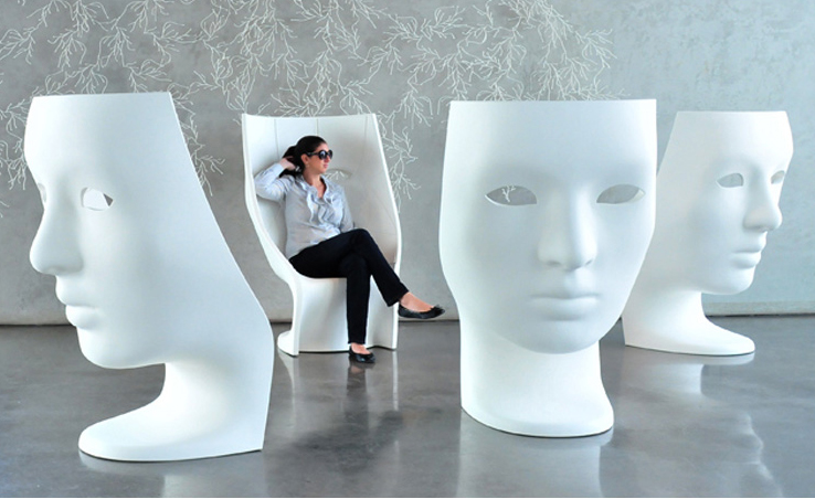 在2010米兰家具展上,意大利家居厂商Driade 推出了由设计师Fabio Novembre 设计的面具椅Nemo Chair。Nemo Chair 很高,足以把坐在上面的人整个都隐藏到“面具”的后面,让你有一种安全感的同时,其造型也极具希腊雕塑般的美感。