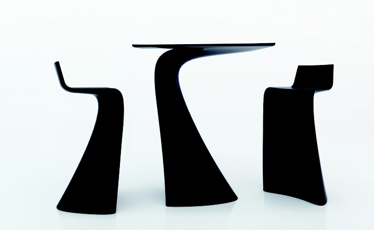 "翼系列包含翼台和翼吧凳,由设计大师oaquín Torres和Rafael Llamazares设计,它造型以一种动态的方式将直线和曲线编织在一起。这些极端曲线和角度,在最新的体系结构中,已经达到了家具设计典范,通过运用自由的、 微妙的、 有机的线条,以运动的形态,分离本身刚度。这些都是大胆的创新,构成了巨大的视觉冲击,令人印象深刻,达到雕塑和动态意义。"