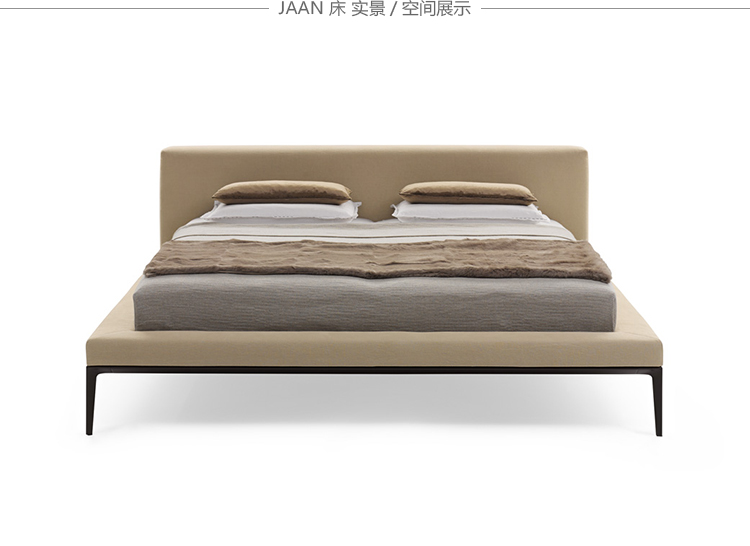 JAAN床最引人注的是它迷人的魅力,非常的柔软,非常的休闲。诗歌以简洁的线条形式出现。柔软的皮革或者天然织物构成床头板和软垫框架。完美的细节,精心打造。