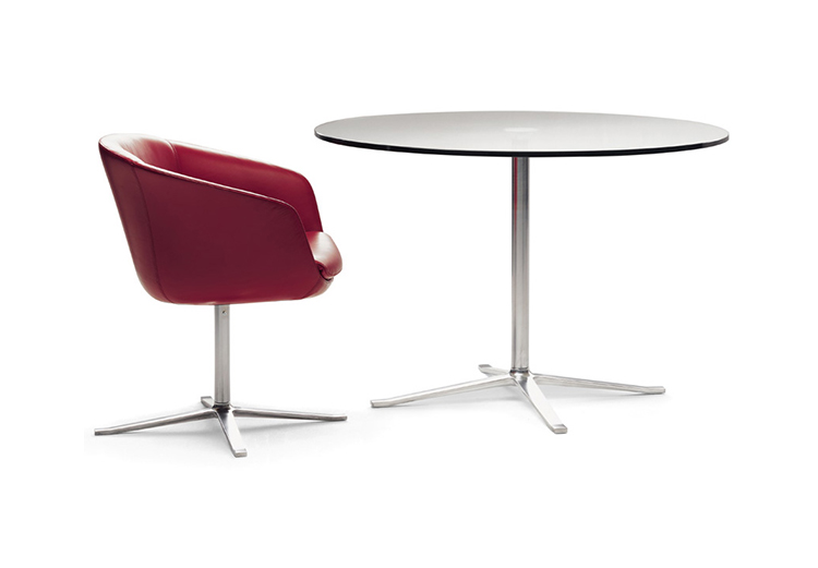 这是一张能提供豪华舒适感的软垫扶手椅。其轻柔的扶手,舒适的靠背,构成了线条迷人外形。依靠其细长的支架,椅子可以很随意的转动。同时与脚架类型相同的X茶几相配套。