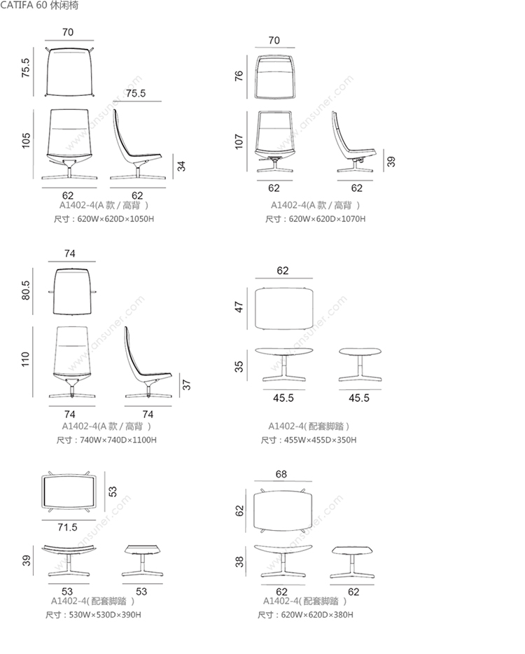 Catifa 60 休闲椅 系列尺寸/示意图