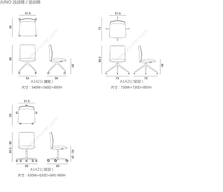 Kinesit 会议椅/洽谈椅 系列尺寸/示意图