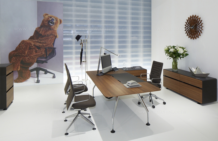 行政办公室计划包括一张大桌子和三个不同的储物家具。 所使用的材料,如铝,木材和皮革,质量特别高,精心制作到最后的细节。 凭借其建设性的轻盈和设计优雅,该计划可以与Ad Hoc办公系统,AC 4椅子(均由Antonio Citterio设计)或Vitra系列经典系列完美结合。