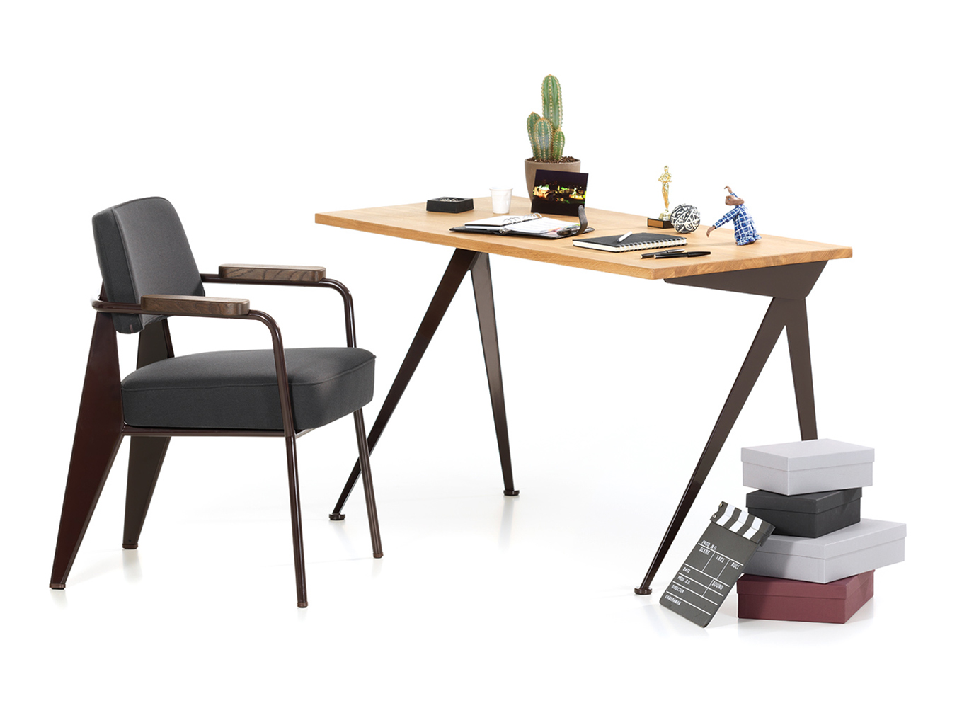 由JeanProuvé设计的Compas Direction办公桌,优雅的金属腿让人想起指南针的铰链臂 - 法语中的“le compas”。 他们的设计基于工程原理,代表了法国设计师和工程师的结构方法。 与涂油的实木桌面搭配,它们在家庭办公室形成了丰富的对比材料组合。
