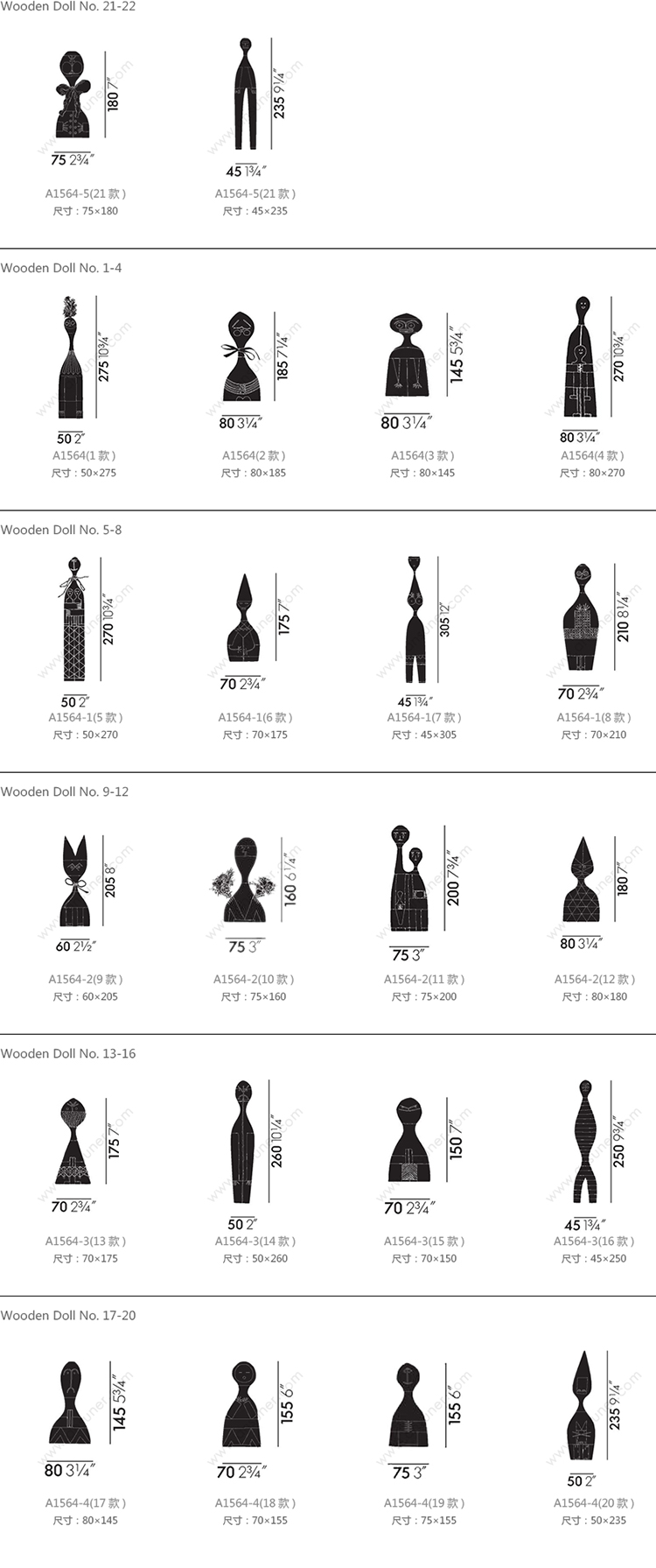 Wooden Doll No.21-22 系列尺寸/示意图