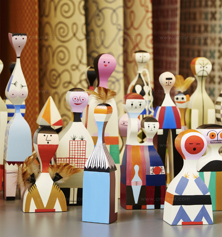 Alexander Girard的木制娃娃是一个代表人类和动物角色的大型木制家族。 吉拉德于1953年设计了他们作为圣达菲家中的装饰物品。 这些原件是维特拉设计博物馆馆藏的吉拉德庄园的一部分,作为当前重新版本的模型。 精确地复制到最后的细节,许多不同的木制娃娃今天仍然是手工制作和绘制的,就像Alexander Girard的复古作品一样。 即使它们之间的差异非常微小:每个木制人物都是独特的个性化产品,真正独一无二。