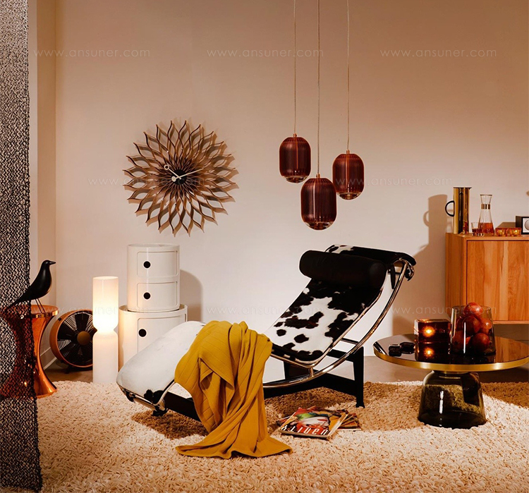 信仰进步和日益增长的经济繁荣是1950年左右美国生活方式的核心方面。一切似乎都有可能,人们努力做到“现代”。 为了将现代设计融入美国家庭,乔治·尼尔森构思了各种日常用品:灯具,钟表和其他家居饰品。 直到20世纪70年代,尼尔森办公室为家庭创造了许多不同的物品,包括泡泡灯和球钟,它们成为了本世纪中期现代设计的象征。
