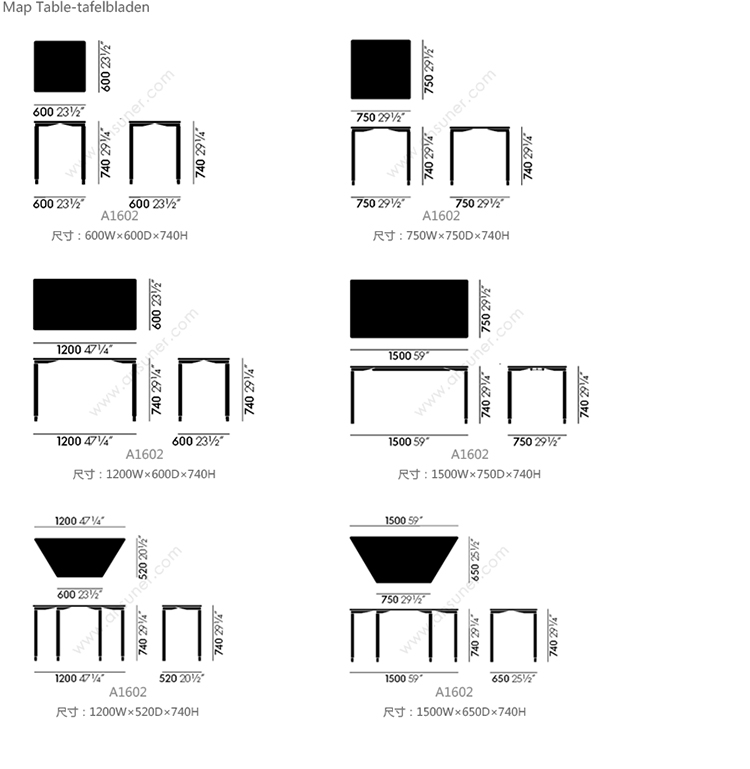 Map Table-tafelbladen 系列尺寸/示意图
