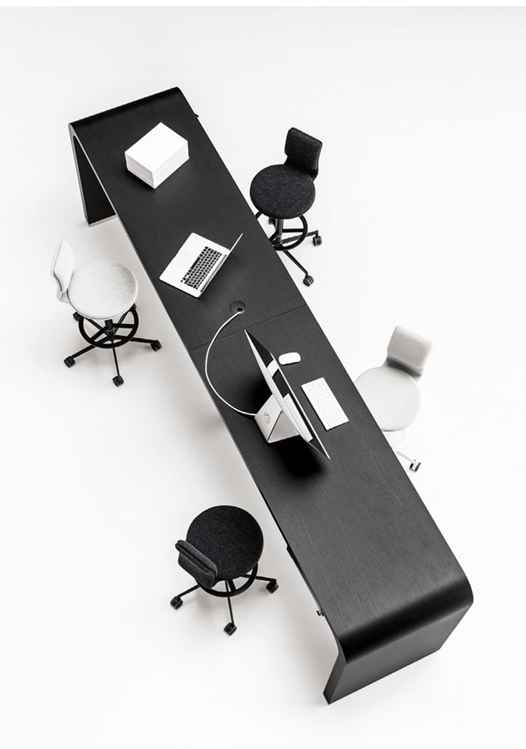 两个世界,两个“时刻”聚集在一起的传统早午餐。一方面,一个木头顶部下降在一个曲线到地板,轻轻地改变厚度,另一方面,一个严格的金属底座。由于其高度原始的不对称效果,这张桌子可以自由排列,高度相交和开放的方向,一个恒星。
