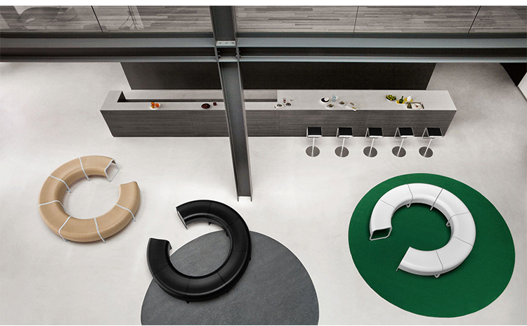 在日语中,“za”指的是一个安全的聚会场所,很久以前,寺院就是这样的地方。受这一古老的好客传统的启发,信和友子自上而下创造了一个优雅的座位系统,是等候区、博物馆和商店的理想选择。每一个单一的元素,有一个轻微的形状,曲折的轮廓,可以无限地倍增。随着直线和弯曲元素的交替,它创造了一个令人惊奇的世界的形状。所有元素都有一个特殊的金属带。这次会议的特点是昨天和今天的人们的历史。