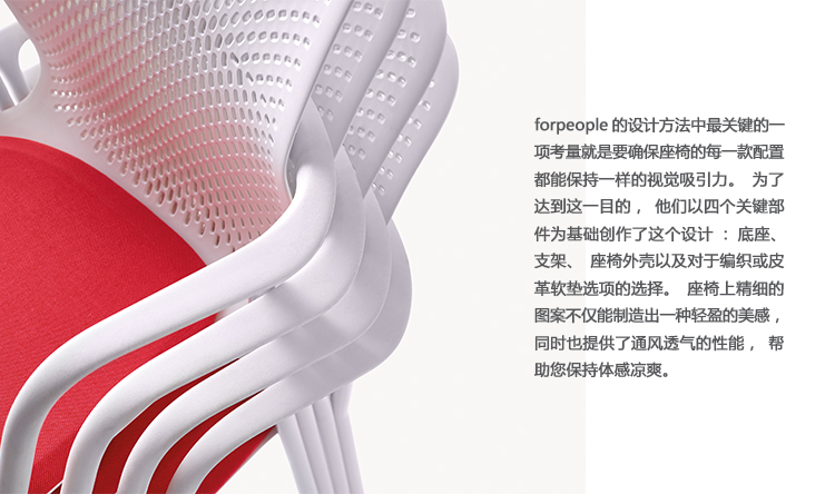 Keyn座椅系列是一套会议和单椅的组合,能为协作式的空间提供响应式的运动机制和即时的舒适感。由伦敦设计团队forpeople设计的这款产品,使用了四个关键部件来创作此系列中的每个型号的产品,所以每款产品都能保持一样的视觉吸引力。Keyn的CradleFlex运动机制能响应姿势的变换,倾仰角度可达10度,能为您带来令人愉悦的舒适感
