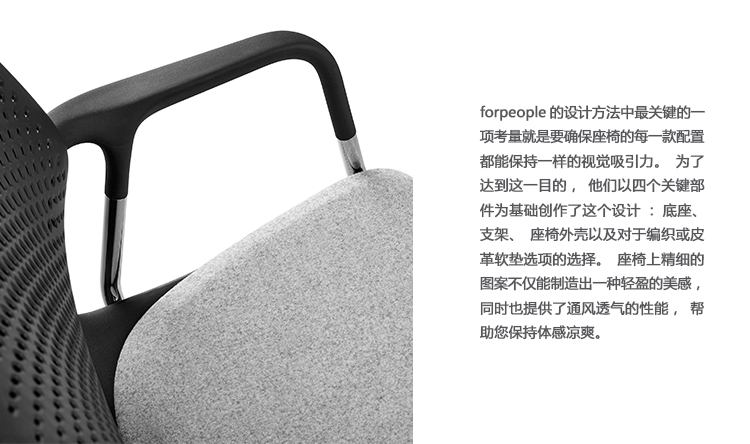 Keyn座椅系列是一套会议和单椅的组合,能为协作式的空间提供响应式的运动机制和即时的舒适感。由伦敦设计团队forpeople设计的这款产品,使用了四个关键部件来创作此系列中的每个型号的产品,所以每款产品都能保持一样的视觉吸引力。Keyn的CradleFlex运动机制能响应姿势的变换,倾仰角度可达10度,能为您带来令人愉悦的舒适感