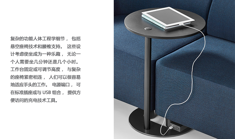复杂的功能人体工程学细节,包括悬空座椅技术和腰椎支持。这些设计考虑使坐成为一种乐趣,无论一个人需要坐几分钟还是几个小时。工作台固定或可调节高度,与复杂的座椅紧密相连,人们可以很容易地适应手头的工作。电源端口,可在标准插座或与USB组合,提供方便访问的充电技术工具。