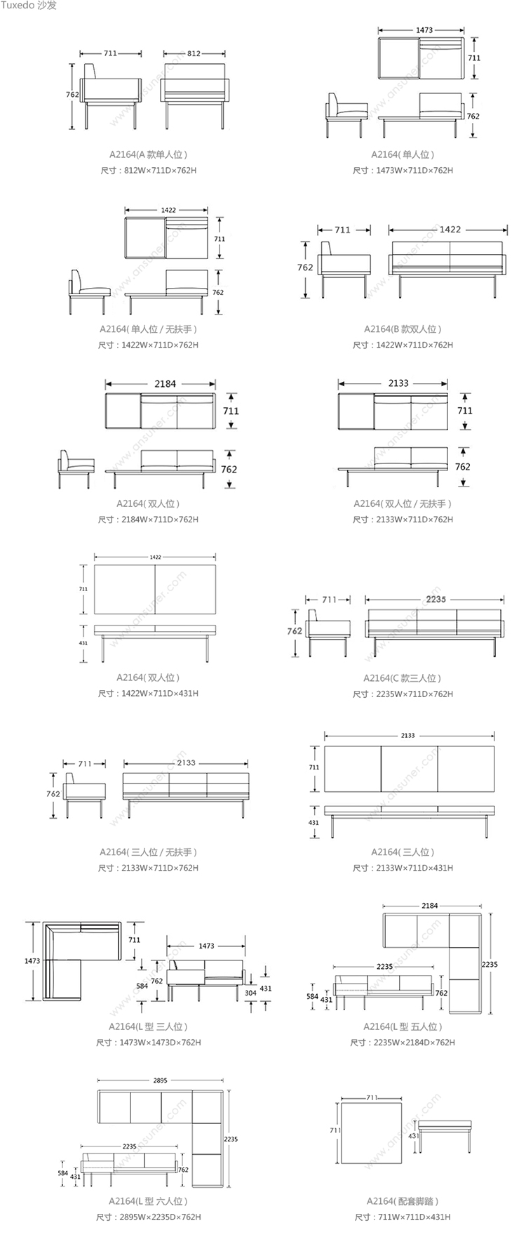 Tuxedo沙发设计用于固定休息室空间而不会在视觉上压倒周围环境,其精确的比例和精致细节。它们基于模块化网格,适用于从双座沙发到宽阔角部的设计。网格还允许任何Tuxedo沙发与Tuxedo系列中的其他部件轻松连接,包括沙发椅,长凳和休息室座椅。
