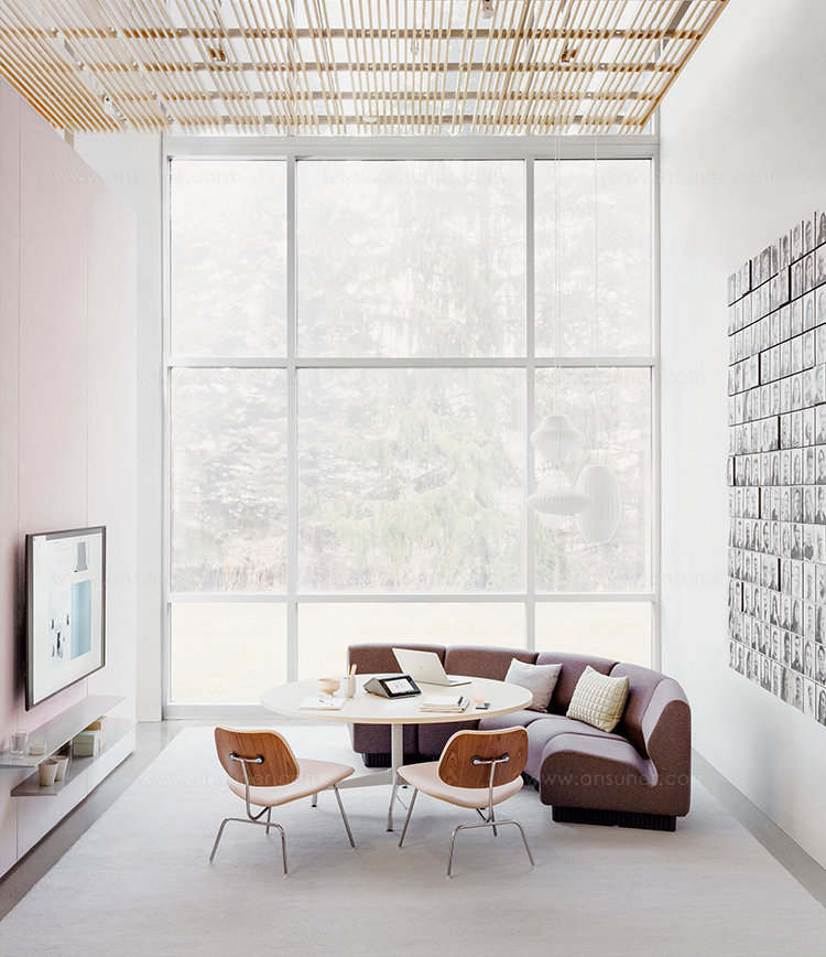 Nelson Cigar Crisscross Bubble Pendant雪茄形十字气泡吊灯可提供两种尺寸,与不锈钢吊线板配套,通过一根6英寸的吊绳悬挂在天花板上。George Nelson最初于1952年设计出气泡灯,当时他偶然发现了一款瑞典吊灯,打算买回去放到自己办公室里使用。但那款吊灯高昂的价格让他犹豫了,于是决定自行设计。其结果就是一系列简单的球状外形面世了,比如圆圆的苹果、宽大的杯托和造型优美的梨,等等。
