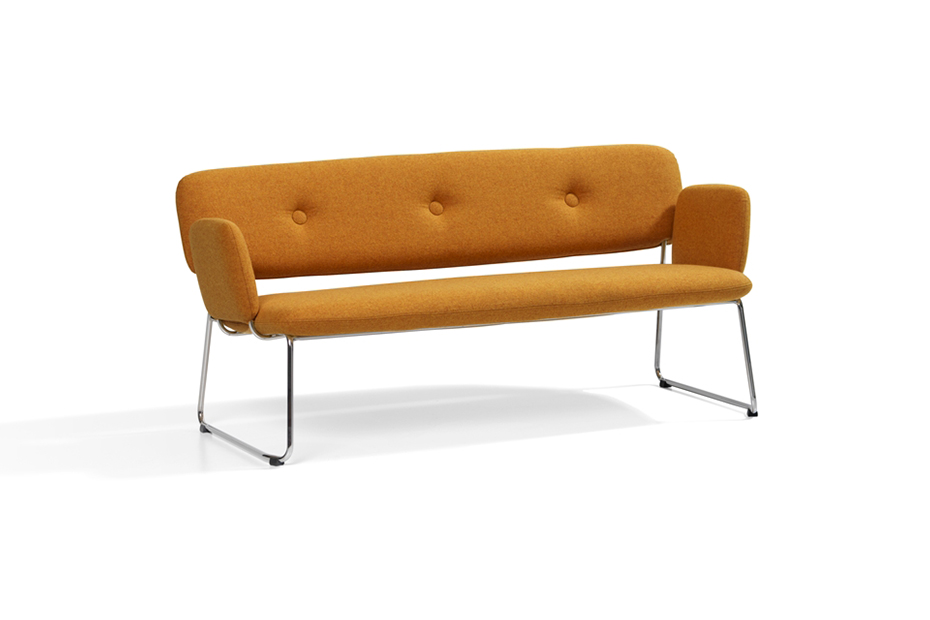 可叠放的沙发和带扶手的沙发。带软垫扶手的沙发不可叠放。木和钢制的框架。用织物或皮革覆盖的CMHR聚氨酯模压泡沫填充物。“绿色”铬合金钢制框架,铬III。塑料英尺。