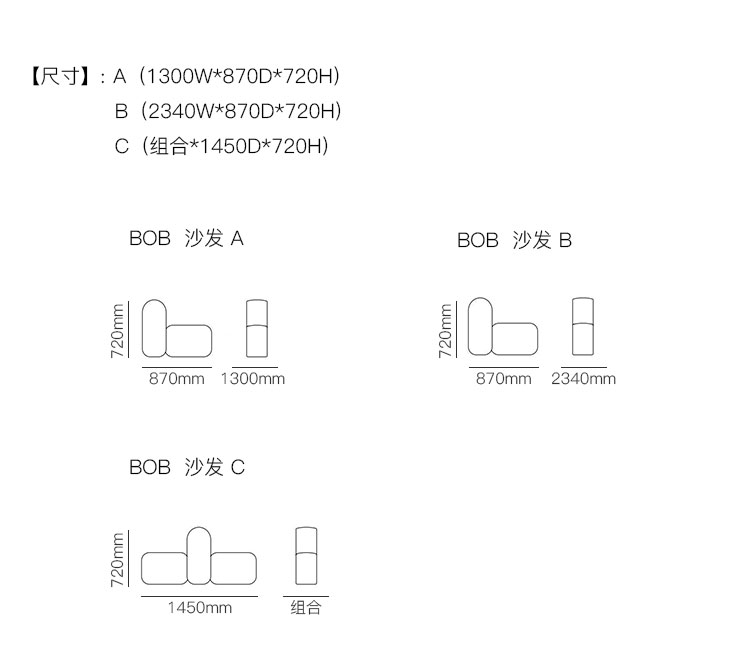 Bob 沙发 系列尺寸/示意图