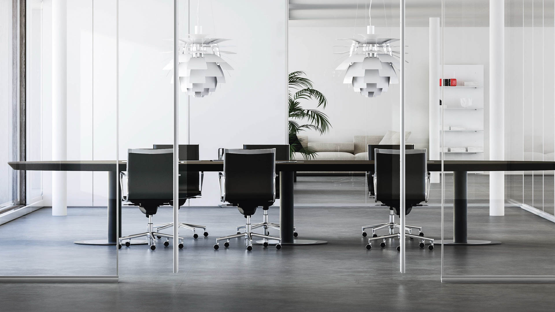 单层玻璃地板隔断墙。阳极氧化挤压铝结构型材,无涂层。具有0.38 mm PVB中间膜的5 + 5 mm夹层玻璃或具有1.52 mm隔音PVB中间膜的5 + 5 mm夹层玻璃均可使用。在标准版本中,使用透明玻璃。 明亮的空间。单层玻璃落地式结构由特定的阳极氧化铝部分组成,可让您在中心安装或偏移安装并与任一外表面齐平的单个玻璃板。使用结构性双面透明硅胶带或垂直透明的聚碳酸酯接缝将玻璃元件连接在一起,以确保平滑平齐的连接。一系列柔软的PVC密封条确保了稳定性和隔音性,这些密封条沿外部周边设置,固定了玻璃板。