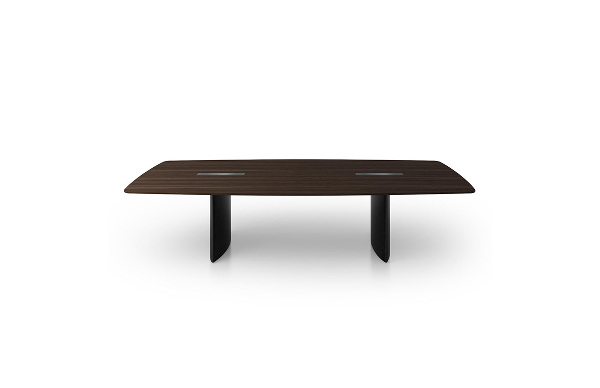 船形或椭圆形为基本形状的高级会议桌,经典椭圆形或长方形脚, 用于隐形电缆布线和技术集成-易于维护.
