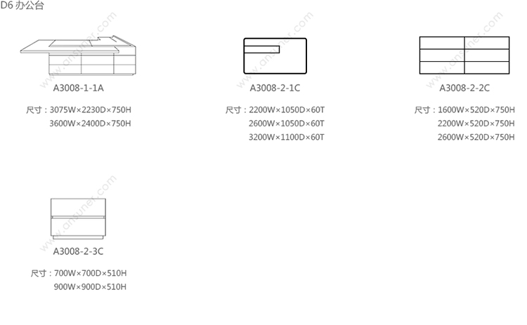 D6D6行政总裁桌 系列尺寸/示意图