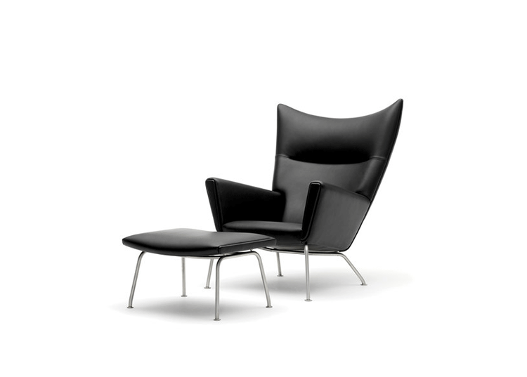 Wing Chair 典型的 Hans J. Wegner 設計,雕塑般的立體線條,讓這張椅子像藝術品般的獨佔一方。寧靜、祥和、平衡的鮮明的個性,來自椅背的弧度、轉角的收邊、肩線的溝槽和襯墊扶手。