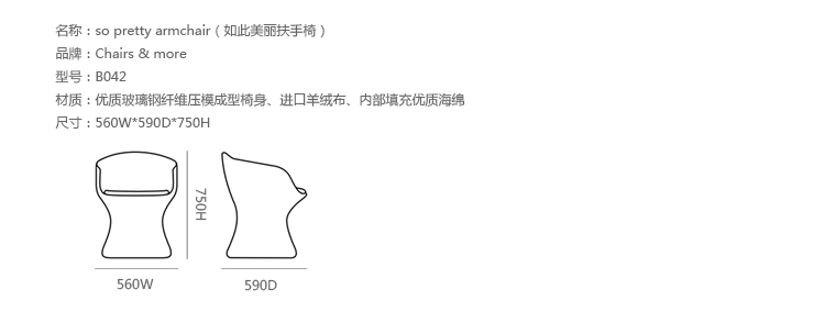 So Pretty Armchair(如此美丽扶手椅)是设计师Dario Delpin设计的底背扶手座椅,金属框架,优质玻璃钢纤维压模成型椅身、进口羊绒布、内部填充优质海绵,颜色多选。设计时尚青春活力,简洁大方,可在家庭、办公、商业、公共场所等使用。