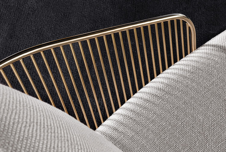 Colette扶手椅的制造过程相当复杂。外部的金属构架经过压延和装配,焊接点超过三百个。特殊的金属表面源于在淡金色的液池中进行电镀的工序以及透明的保护涂层,在此基础上拥有刚度和深度。座椅结构前方搭配地面支撑件,采用聚氨酯泡沫制成,内部插入金属件,绑带的设计使其具有一定的弹性,从而保证绝佳的舒适度。 坐垫和靠背完美搭配构架的设计。