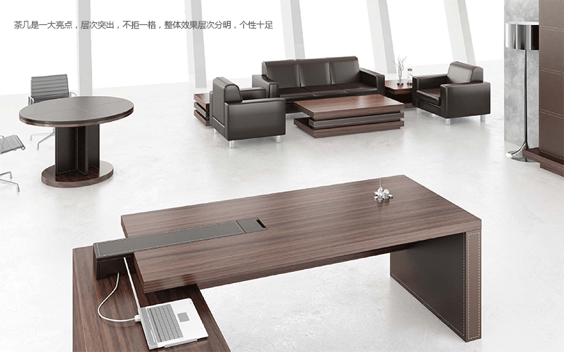 卡罗是木配皮的经典搭配,体现一般现代感和稳重的气质,文件柜分为单边门、全空格、中间皮推拉门、全部皮门几种,每种搭配都有一种不同的稳重美感在里面。会议台加长则有大气稳重之美,小款有精细优雅特质。根据办公场地,可任意配出满意的效果。