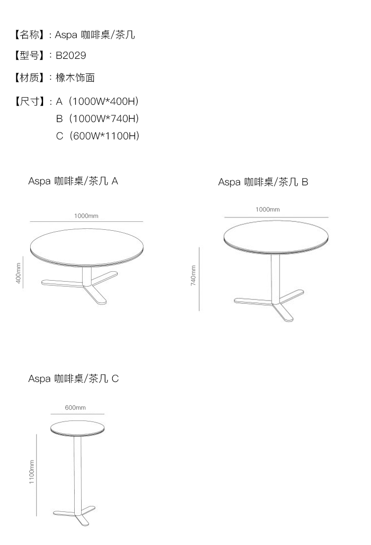 Aspa 咖啡桌/茶几 系列尺寸/示意图