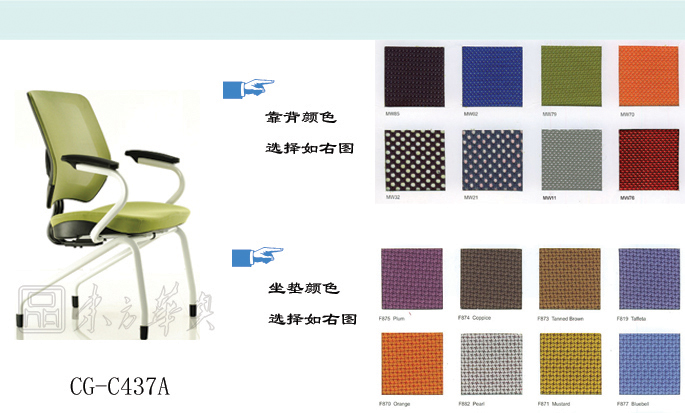 5、椅脚:黑色烤漆弓形脚架,牢固耐用、不易脆裂,承受力度強。弓形脚架上安装耐磨性極好的PU脚垫,在使用過   程中適合與多種材質的地板。