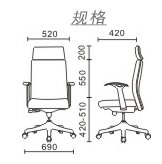 底盘---多段式可定位同步倾仰机构(多角度锁定倾仰,可根据体重调节靠背松紧度) ,靠背与座垫之间的移动角度比例为3:1,-令使用者腿部与背部更平衡
