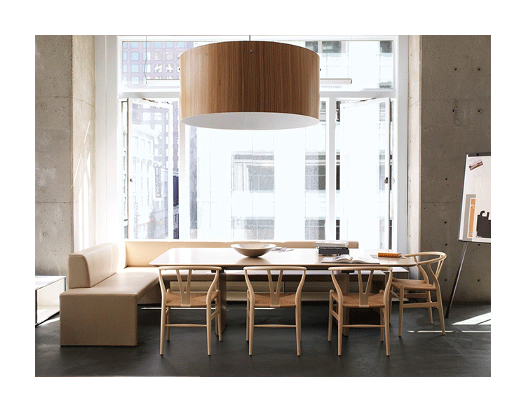 Y椅子是Hans J.Wegner最著名的作品。 它具有重量轻、有吸引力、舒适、中式风格等特点。 该款设计灵感来源于中国传统家具,四平八稳,古色古香,大气自然。上圆下方,浑然天成,深受中国顾客喜欢。Y椅关键在于是工艺与简约的设计,有着清晰的线条。 尽管椅子简约的外观要超过100个步骤进行。除其他事项外,手工编织座垫超过120米的线。 材料有丹麦硬木(橡木,榉木,水曲柳)以及北美硬木(胡桃木,樱桃木)等。外表可漆成各种各样的颜色。 垫子的座位可以添加额外的舒适。