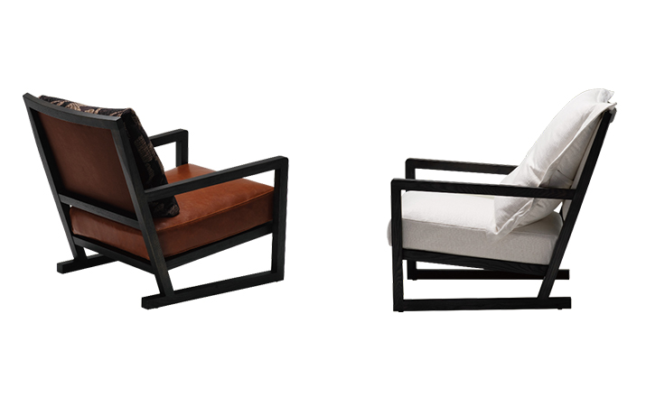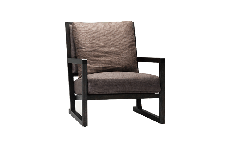 The Simon Lounge Chair features simple,clean design with a modern flourish.The solid wood frame supports a down-layered seat cushion and a loose feather down back cushion. An extremely popular lounge chair,the Simon is available in leather or fabric upholstery.Fabric covers are removable.