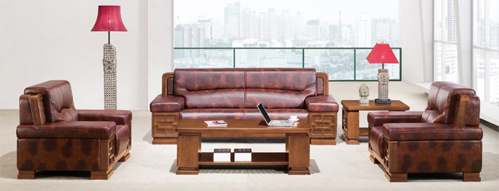 ※ 上图为办公室同系列配套沙发和茶几,实木颜色多种选择也可与职员台的木皮颜色一致,皮质颜色可根据使用单位需求进行订做。