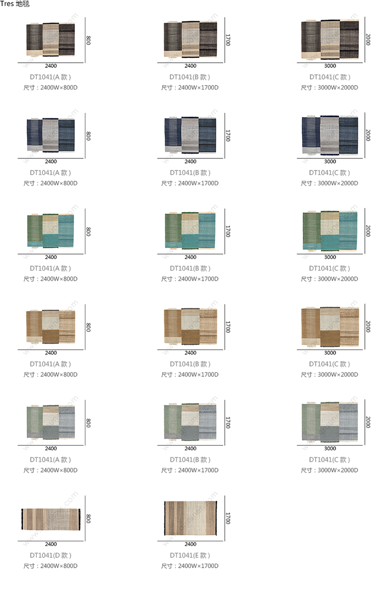 Tres 地毯 系列尺寸/示意图