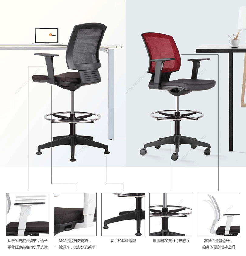 作为一款“入门级”价格的高脚椅,CG-E1010吧椅拥有非常高的性价比,它能在各种任务情景中为个人用户提供卓越的舒适度和支撑度。它能轻便地滑入合作空间和各个角落,优化可用空间,为新的工作方式和非正式的会议或互动提供支持。CG-E1010吧椅拥有旋转、向后倾靠、调节简便等卓越的功能性,能满足每个人不同的需要——包括方便地调节高度、控制靠背。