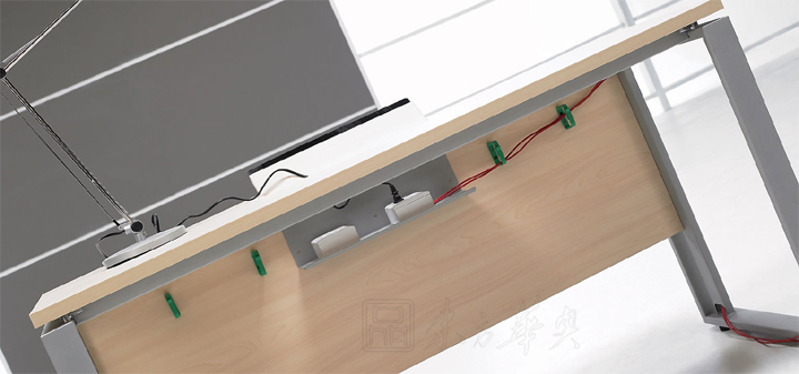 ※ 采用100*20mm制定冷扎喷涂钢脚,以15MM台板托将台面与台脚分离,附台面与副柜空间位子错位,形成新颖的层次感,以最紧凑配合的主台与附柜结合模式,科学设计附柜功能使其具有外观简约,功能完善之特征。