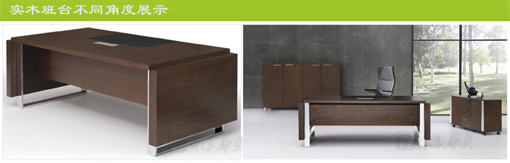 ※ 时尚班台不同角度展示图,实木挡板,实木侧板,不锈钢脚架,显示出继厚实稳重,也时尚简约!