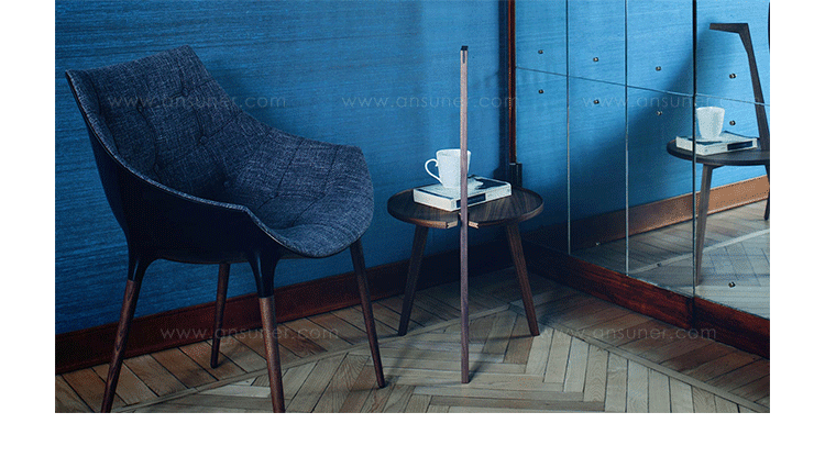 Cicognino Side Table(Cicognino 边几)是著名设计师Franco Albini富有想象力的设计。边几采用实木贴面,非常漂亮精致,非常有设计感和品质感,造型酷似长颈鹿又像一只伸长脖子的天鹅。一张小圆桌,三条实木脚架,做工精湛,其以最小的结构,确保高度的稳定性和完美的平衡,是实用性与艺术玩赏性的完美结合。