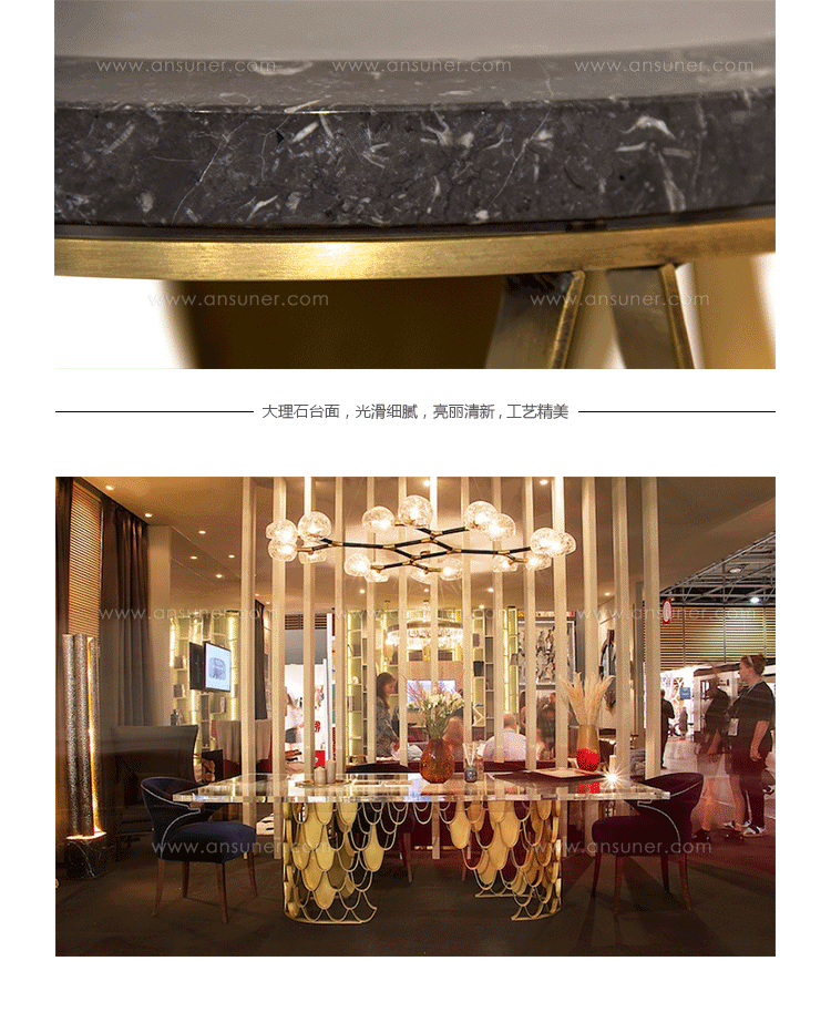 锦鲤,日本文化的象征。金属反射光泽,如在清水中,大理石台面,工艺精美。