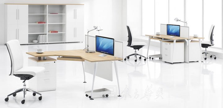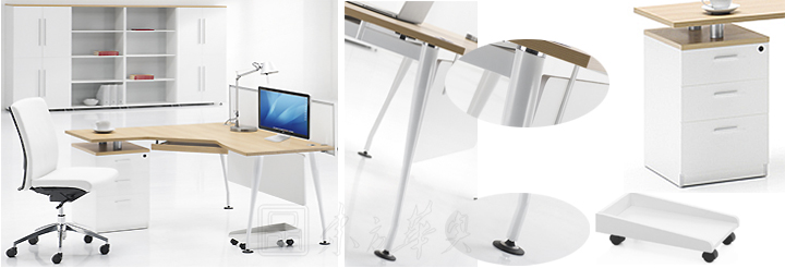 ※ 上图为L型主管位,搭配落地柜,白色钢制喷涂脚架,时尚美观,一体化元素组成,制造出活跃,清爽的办公环境!