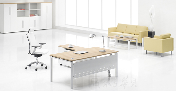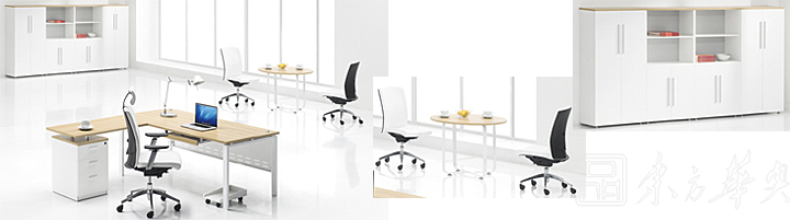 ※各类桌面造型可供选择,并由匹配的抽屉柜、边桌和矮柜构成和谐的办公系统。