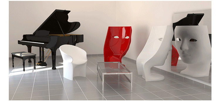在2010米兰家具展上,意大利家居厂商Driade 推出了由设计师Fabio Novembre 设计的面具椅Nemo Chair。Nemo Chair 很高,足以把坐在上面的人整个都隐藏到“面具”的后面,让你有一种安全感的同时,其造型也极具希腊雕塑般的美感。