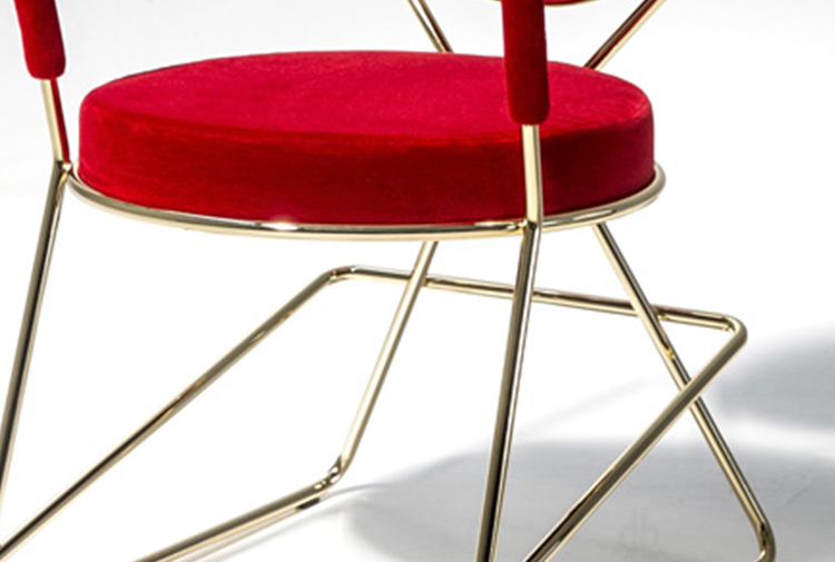 两个圆圈,两个基本模块接枝到本领域的结构几何结构中,去除了灵感,公开地传达了最大限度简化的趋势。这是高品质工业生产的前奏,这是一种优雅的经济,由镀铬钢框架提供的可能性表达,将设计结构设计成一个完整的座位家庭。这样,一把椅子和一把凳子就诞生了,没有扶手,加上一个小小的双座沙发,这是一种精致的正式进化,由良好的品味和阶级所决定。这是一种回归秩序,向一种同时奢华和合成的语言过渡。