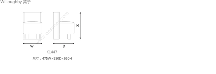 Willoughby 凳子 系列尺寸/示意图