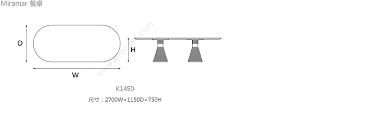 Miramar 餐桌 系列尺寸/示意图