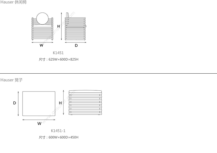 Hauser 扶手椅 系列尺寸/示意图