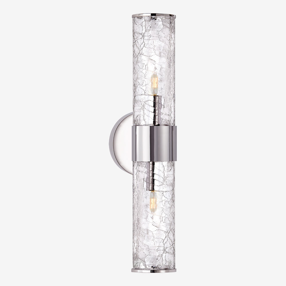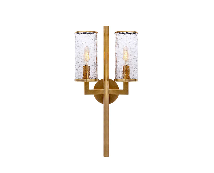 Liaison壁灯以其干净的建筑金属细节和破碎玻璃的动态美感,模糊了现代和经典的线条。 该壁灯适用于室内和室外空间,可提供古董抛光黄铜,青铜和抛光镍。