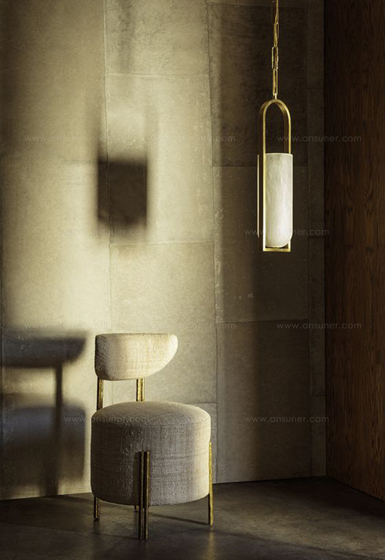 Melange小号细长吊灯巧妙搭配天然雪花石膏和流线型几何形状的时尚金属细节,散发出现代气息,同时强调天然石材的美感。 这款吊灯采用手工雕刻的天然雪花石膏,配以古董黄铜,青铜或抛光镍细节,适合潮湿环境。